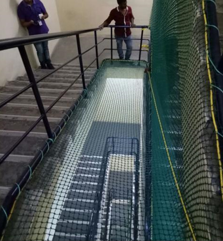 Nets are made of knotted polyethylene (HDPE) hence is UV resistant. HDPE nets are chemically inert, water and weather proof. It has high breaking strength. Nets are fixed using stainless steel wire framework and hardwares. For Further specifications, the nets are fixed using wire rope, net bolts, screw pins, barrel strainers and hogging staples .This helps tight installation of nets that cannot be stretched, giving it a strong, clean & beautiful appearance.